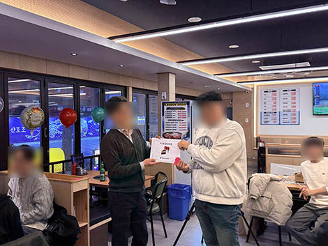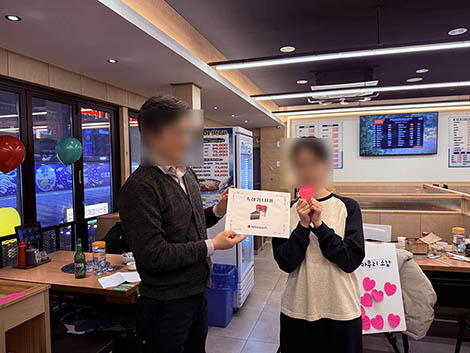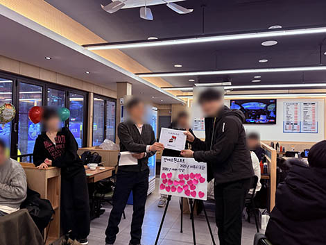 2025년 송년회 행사에는 대표님께서 바쁜 스케줄로 참석하지 못하셨지만, 함께 하지 못하는 아쉬움을 느끼지 않도록 아낌없는 지원을 해주셨습니다.