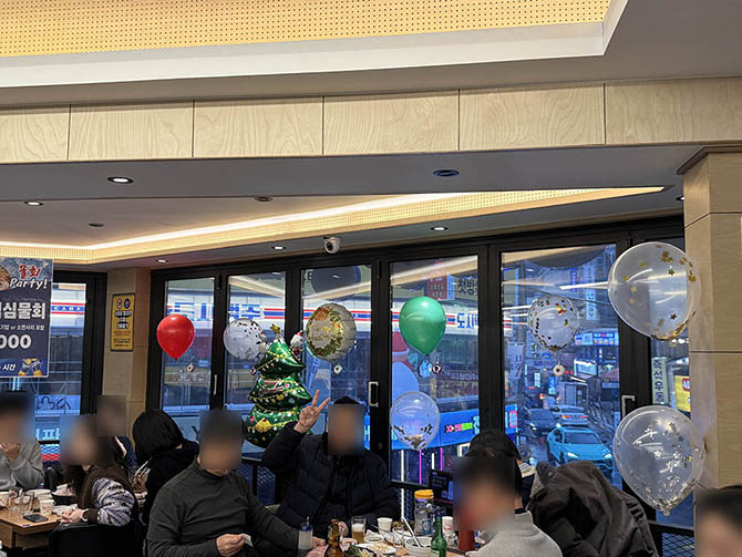 송년회가 12월 23일에 진행되었기 때문에 크리스마스 분위기가 나도록 장소에 미리 도착하여 공간을 꾸미는 작업을 진행했습니다.