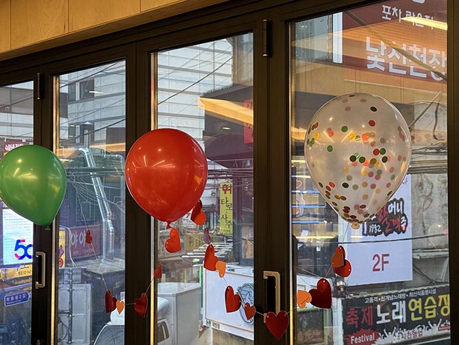 추웠던 날씨가 무색하게 코에 땀나도록 풍선에 바람을 넣고 붙이고 했던 시간였는데요.