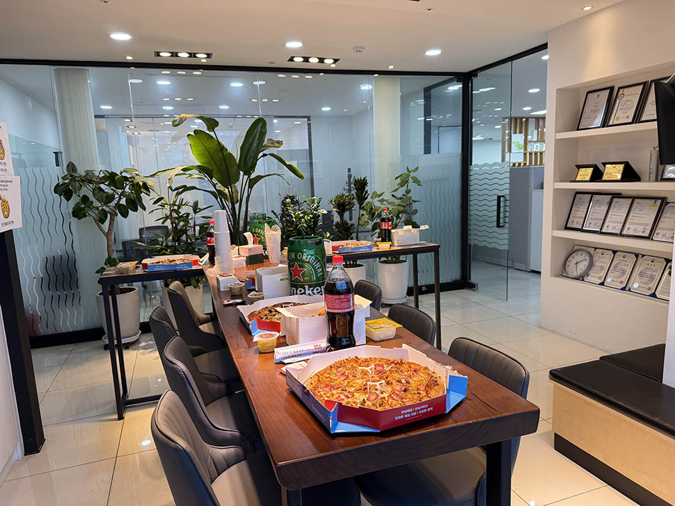 맛있는 피자와 치킨, 그리고 시원한 맥주를 함께 마시며 잠시 숨을 고르는 시간을 가질 수 있었습니다.